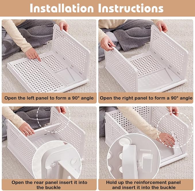 - Durable Material & Strong Load- Bearing--- Folding closet organizer storage box made of hard pp material, thick and sturdy, durable and lightweight, strong load-bearing, can be used for many years, easy to clean with wipes.Three-sided mesh design allows you find what you're looking for at a glance, and let the clothes "breath" freely.