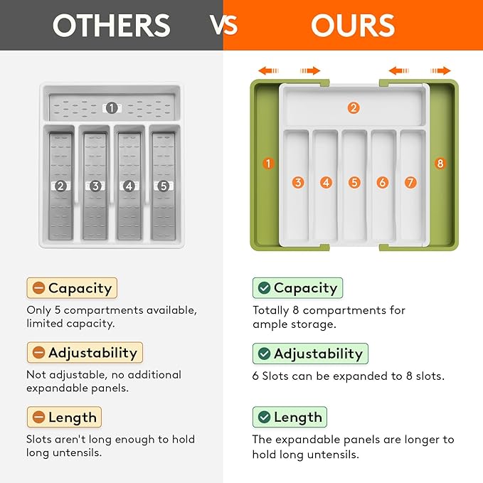 - Sort Your Silverware: With a total of eight compartments for easy sorting and storage, this kitchen drawer organizer allows you to easily recognize, identify & pick up the items you need for use
