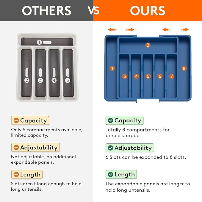 - Sort Your Silverware: With a total of eight compartments for easy sorting and storage, this kitchen drawer organizer allows you to easily recognize, identify & pick up the items you need for use
