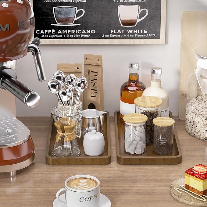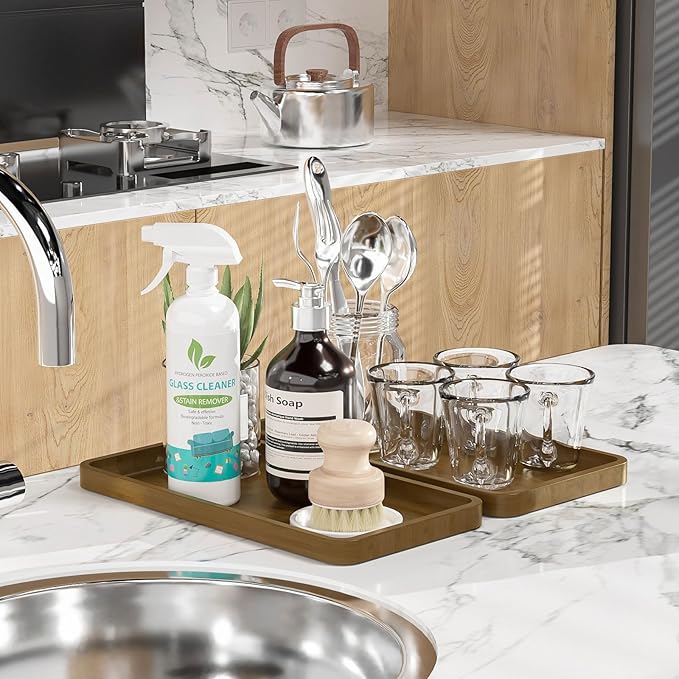 Weenson Bathroom Vanity Tray for Countertop Makeup Jewelry Perfume Decor Candle, Bamboo Kitchen Tray for Soap Dispenser Spice Salt Oil, Brwon Tray for Toilet Tank Coffee Nightstand Set of 2