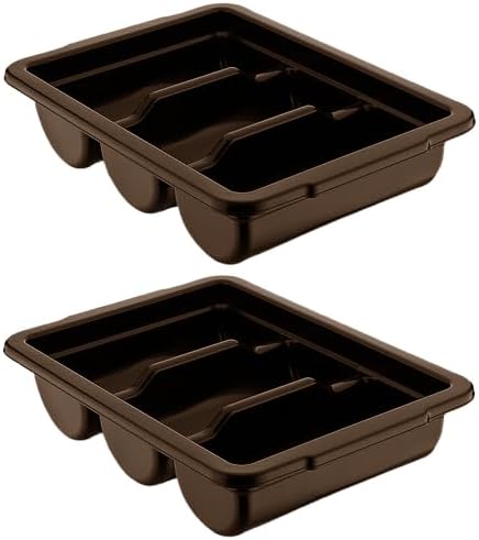 4 Pack - Commercial Cutlery Bin, 3-Compartment Restaurant Kitchen Flatware Tray, Silverware Storage Plastic Container, Condiments Holder, Utensil Organizer Box (Brown)