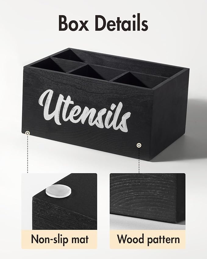 - 【SOLID WOOD】- The silverware holder is made of solid wood. Very suitable for organizing without taking up too much space, and there are anti slip pads at the bottom that won't scratch your counter.