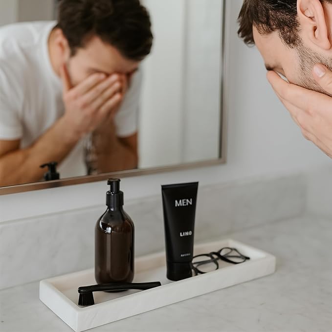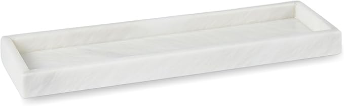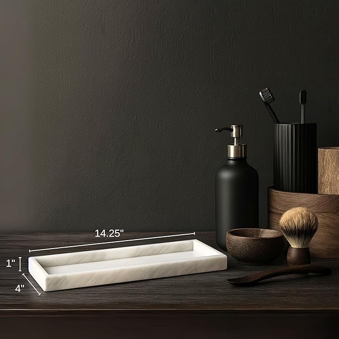 Bey-Berk Marble Bathroom Tray 14.25" x 3.75" x 4" (LxWxH) Polished Marble Tray for Bath, Kitchen and Bedroom, Stone Vanity Tray for Organization and Display, Handcrafted - White
