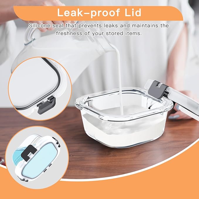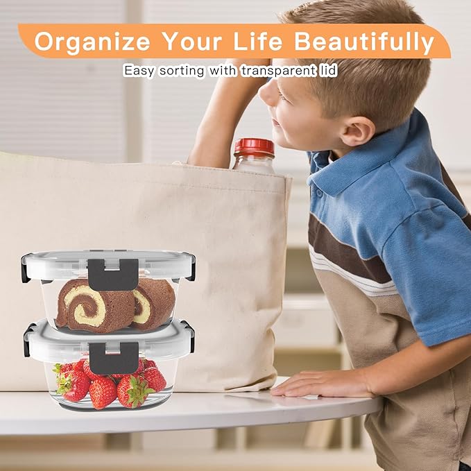 - Glass Meal Prep Containers: These premium borosilicate glass lunch containers with lids are designed to withstand extreme temperatures from -22°F to 390°F, making them perfect for both hot and cold snacks. Glass containers are long-lasting use airtight for microwave, oven, freezer and dishwasher
