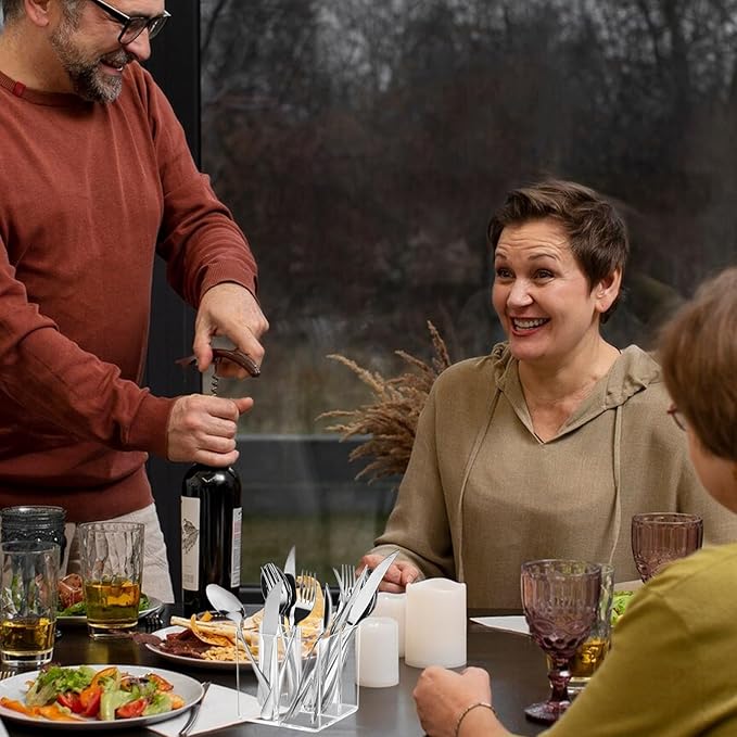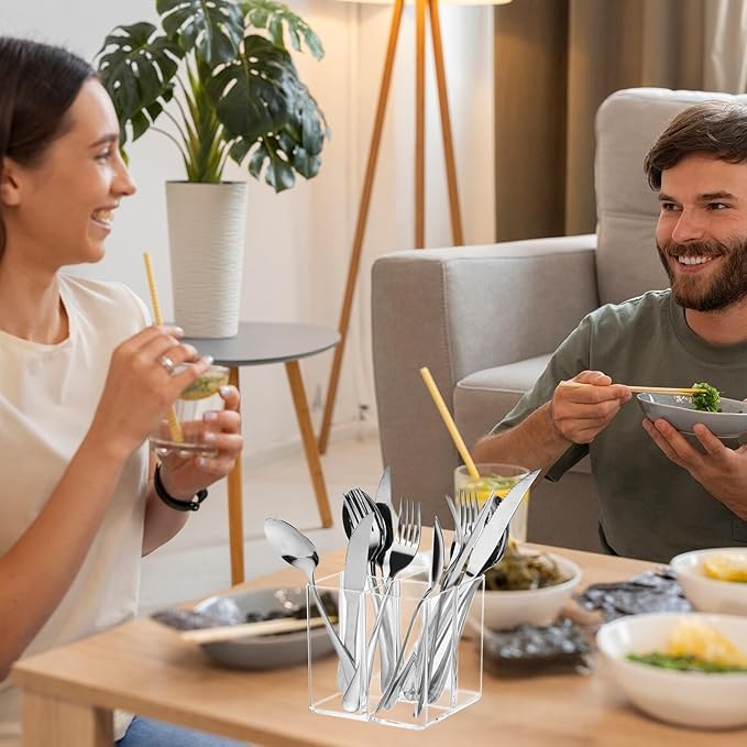 - Practical Design: The countertop silverware organizer incorporates a beautifully designed cutlery compartment, The clear plastic silverware rack will impress everyone! Great for party tables, kitchens, picnic tables and more! keeping your kitchen organized and convenient for you to get the corresponding silverware, also adding an elegant touch to your home decoration.