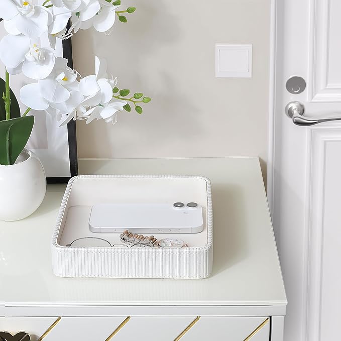 - Multifunctional Vanity Trays —— Perfect for various scenarios such as living room TV stands, office desks, bedroom nightstands, dressing tables, and entryway consoles. It caters to diverse storage requirements and enhances the functionality of any area in your home