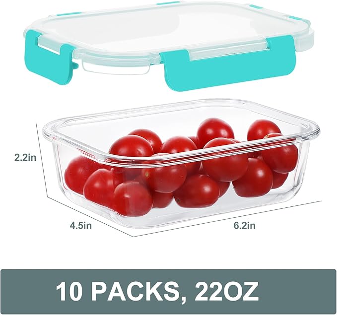 10 Packs 22 oz Glass Meal Prep Containers, Glass Food Storage Containers with Lids, Airtight Lunch Boxes BPA Free, Microwave and Freezer Safe, Green