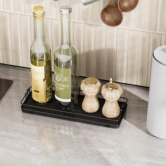 - Versatile & Functional: Our bathroom vanity tray enhances any space with its stylish design while serving multiple purposes throughout your home; Whether you use it as a bathroom tray, vanity tray, kitchen tray, decorative tray, perfume tray, jewelry tray, serving tray, catch-all tray, key tray, or toilet tank tray, it will keep your countertops tidy while adding a unique and stylish touch to any room