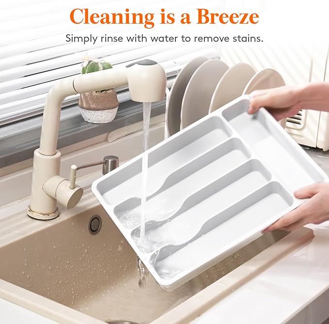 - Safe PP Material: Crafted from sturdy food-grade PP material, our silverware container with lid withstands daily wear and tear. It is BPA-free, ensuring the safety of all types of cutlery. Cleaning is a breeze - simply rinse with water to remove stains