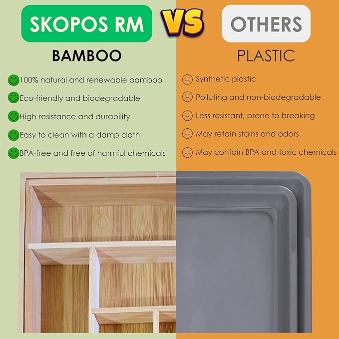 - 【Elegant & natural design bamboo silverware organizer】: Bamboo adds a warm, sophisticated touch to any kitchen. Keep your cutlery drawer organizer and enjoy a harmonious look that matches any decor style, organizer for kitchen drawer the complement that will give order and security to any space in your home