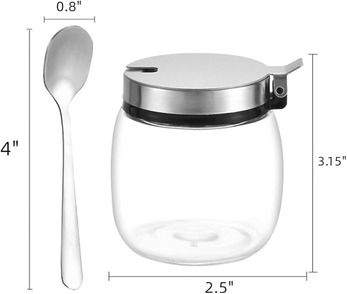 - Safe and durable materials: Our sugar jars are made of sturdy and thick glass. The lid and spoon are made of stainless steel and can be used for a long time, and the glass jar is rust-free and can be used with confidence without residue.