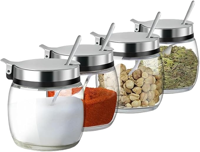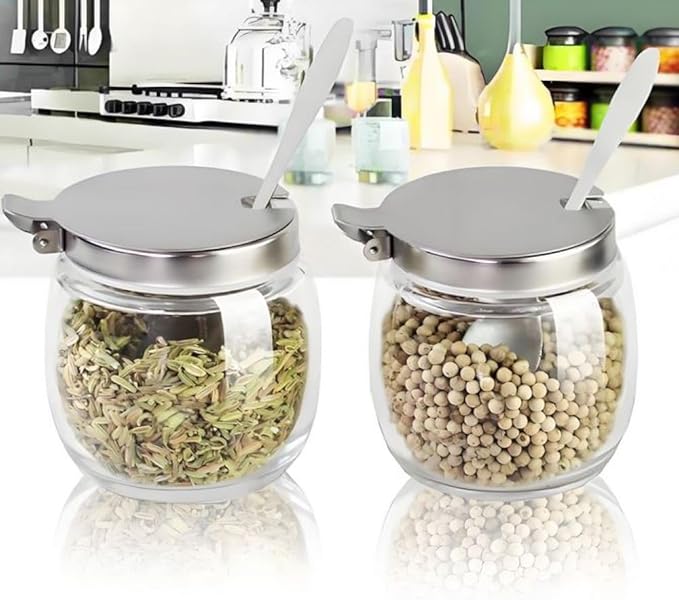- VERSATILE: This glass seasoning jar can easily keep salt, sugar, spices and seasonings dry and is the perfect kitchen storage organizer; Suitable for kitchens, homes, hotels, cafes, restaurants, parties.