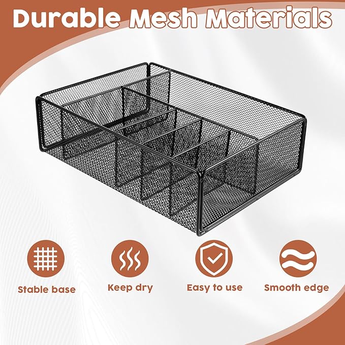 - Durable and Easy to Maintain: Crafted from high-quality black metal mesh and stainless steel, this utensil holder is built to last. It’s resistant to wear and tear, offering durability compared to ceramic alternatives. Its smooth, waterproof, and oil-proof surface makes cleaning a breeze, keeping your silverware caddy looking pristine.