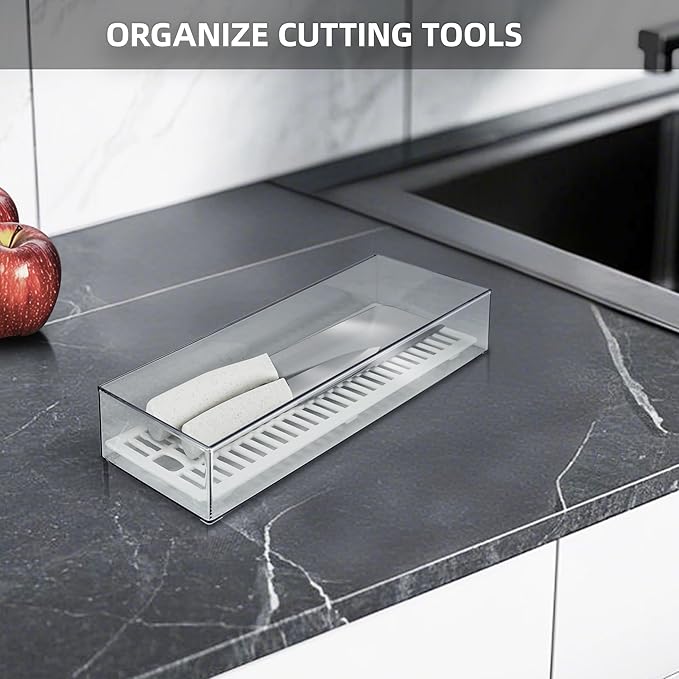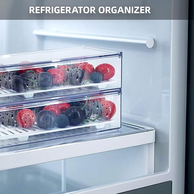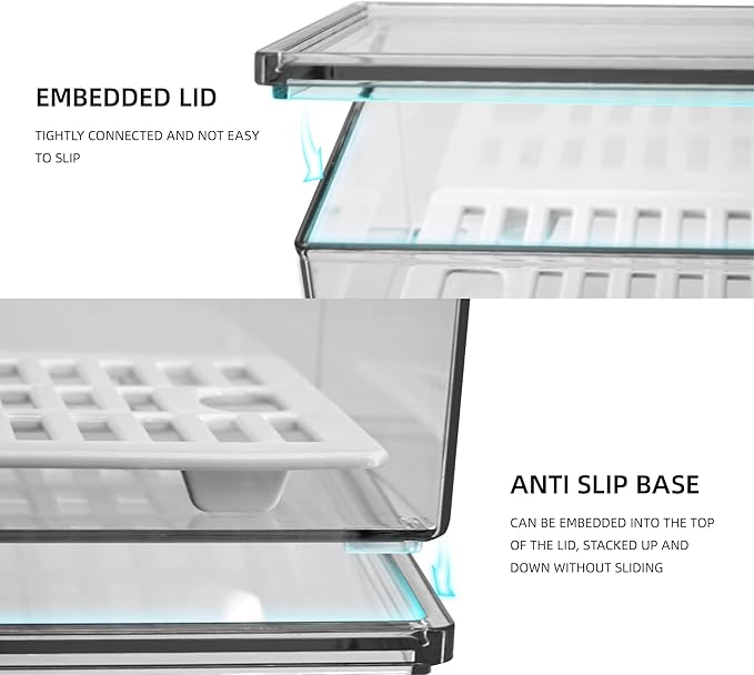 - 【Easy to store】The Clear Plastic Drawer Organizer can be used for storing utensils in kitchen drawers/countertops, storing food in refrigerators, storing in bathrooms, and storing cosmetics, Our Long Storage Bins with lids can be stacked or laid flat to save more space