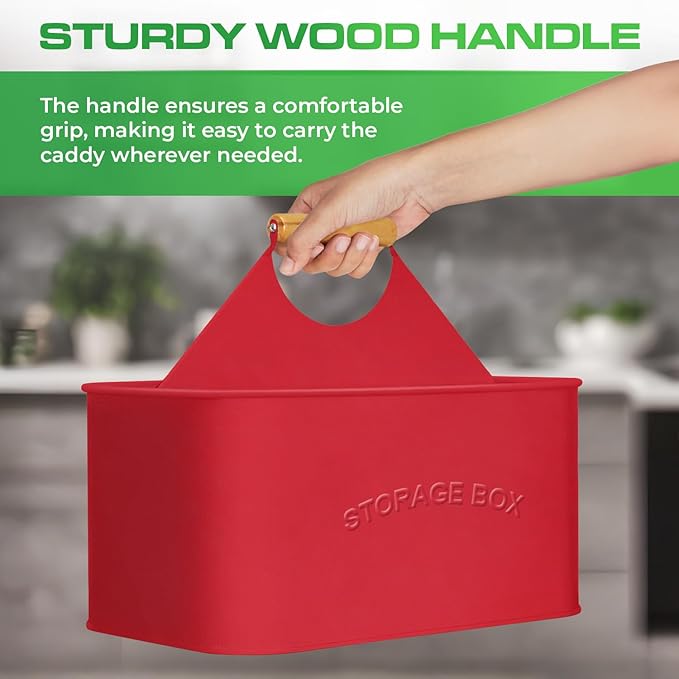 Plexon Red Metal Caddy, Table Utensil Caddy with Handle, Galvanized Steel Utensil Holder for Party, Metal Flatware Caddy Large Silverware Organizer Countertop for Kitchen Garden Patio Bathroom