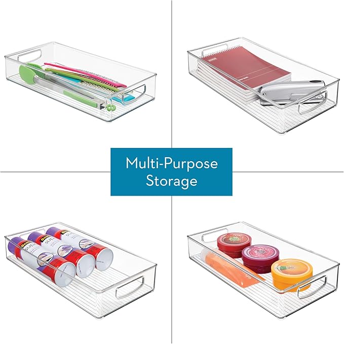 - SMART STORAGE - Reinvent your kitchen space with our iDesign Stackable Pantry Bins; These clear, open-top bins grant immediate reach-in access to food and other perishables, making it easy to find what you need; Shelf-friendly dimensions maximize shelf space inside pantries, cabinets, or refrigerators; Set of 2