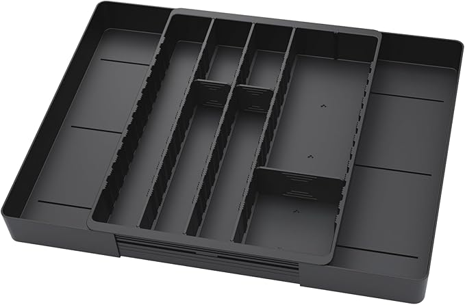 Fu Store Silverware Drawer Organizer DIY Customize Expandable Utensil Tray for Kitchen Upgraded Flatware Cutlery Holders Adjustable Plastic Tableware Storage for Spatula Spoons Forks Knives (Black)