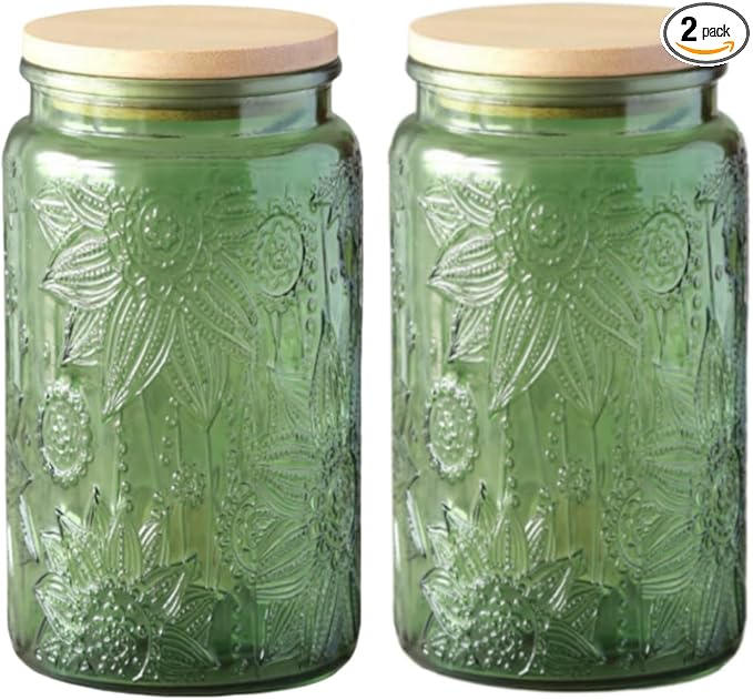 ANSQU Green Glass Canister Jars, 34oz Candy Jars with Lids, Vintage Colored Mason Jars for Kitchen Decorative Jar for Coffee Tea Candy Cookies, Cute Jar (Green, 2 Pack)