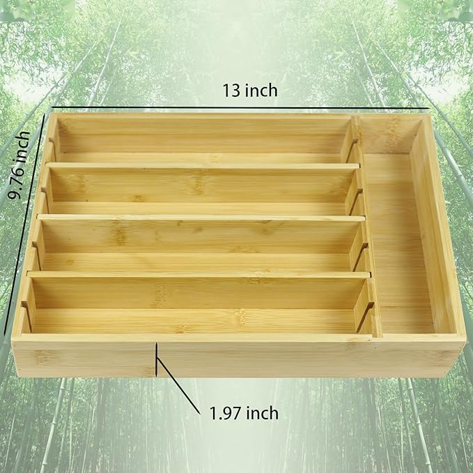 - [Bamboo Construction]: Crafted from high-quality bamboo, these organizers offer a natural and durable solution for your kitchen drawer.
