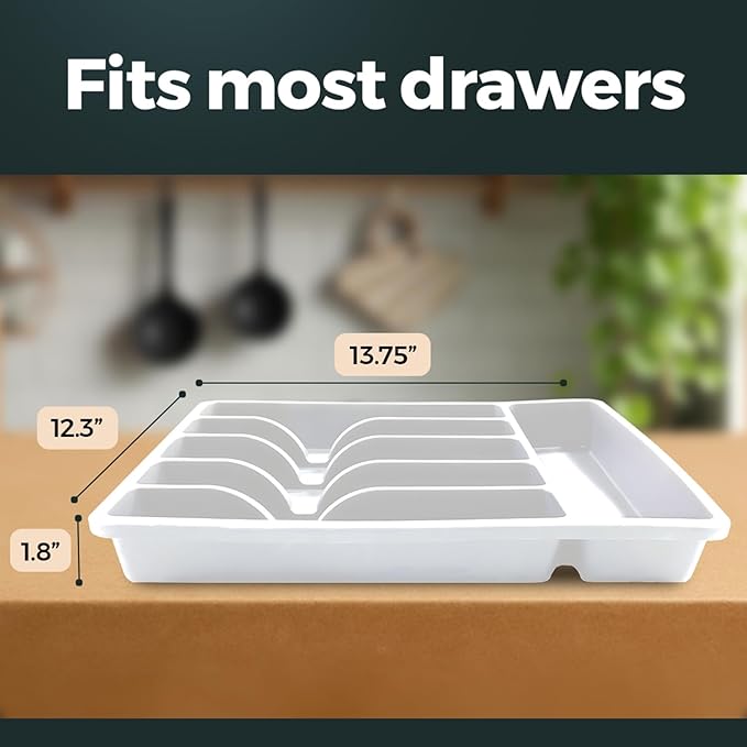 Silicone Silverware Drawer Organizer – Non-Slip Utensil Holder for Kitchen Drawers | Cutlery Tray for Forks, Knives, Spoons & More | Durable, BPA-Free, Easy to Clean – White