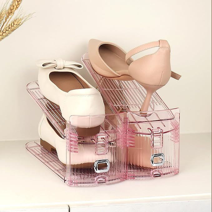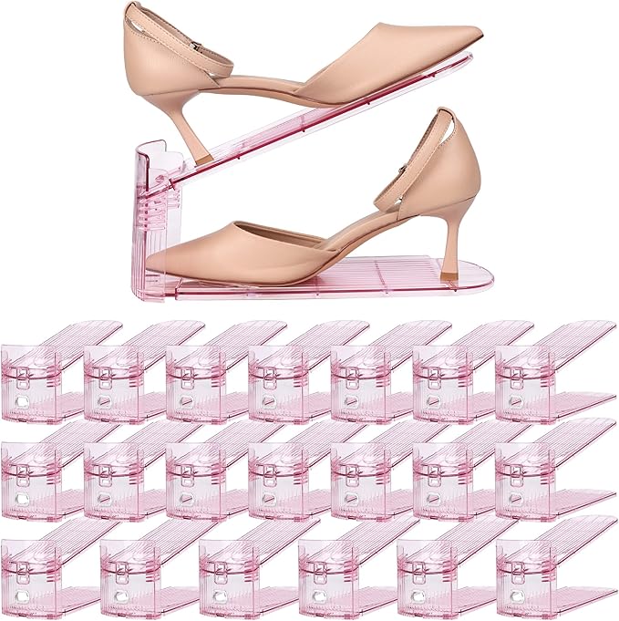 Yes!Fresh Shoe Slot Organizer, Boutique Display Style Shoe Stacker for A Pair of Shoes, Separable Shoe Rack for Closet Organization, 3 Adjustable Narrow Shoe Rack (Pink, 20 Pack)
