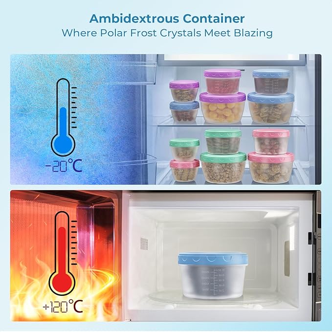- Safe and Durable Food-Grade Material: Crafted from premium PP-5 plastic, these jars are 100% BPA-free, ensuring your safety and peace of mind. Designed to withstand temperatures from -4°F to 248°F, they are perfect for versatile use—store in the freezer, reheat in the microwave, or clean effortlessly in the dishwasher. Enjoy ultimate convenience with worry-free food preparation and storage.