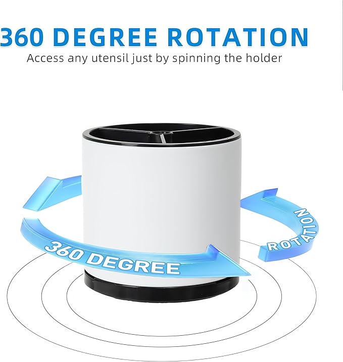 - 360° Rotating Design: Experience unparalleled convenience with our smooth-gliding, 360-degree rotation. Simply spin the holder to effortlessly access any utensil you need, eliminating the need to rummage through a tangled mess. This innovative feature transforms your kitchen storage into a seamless, efficient experience.