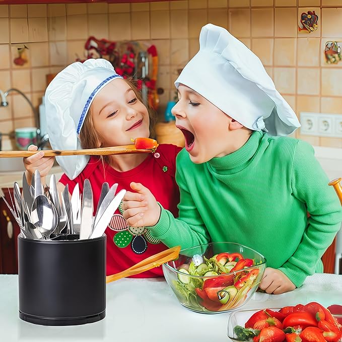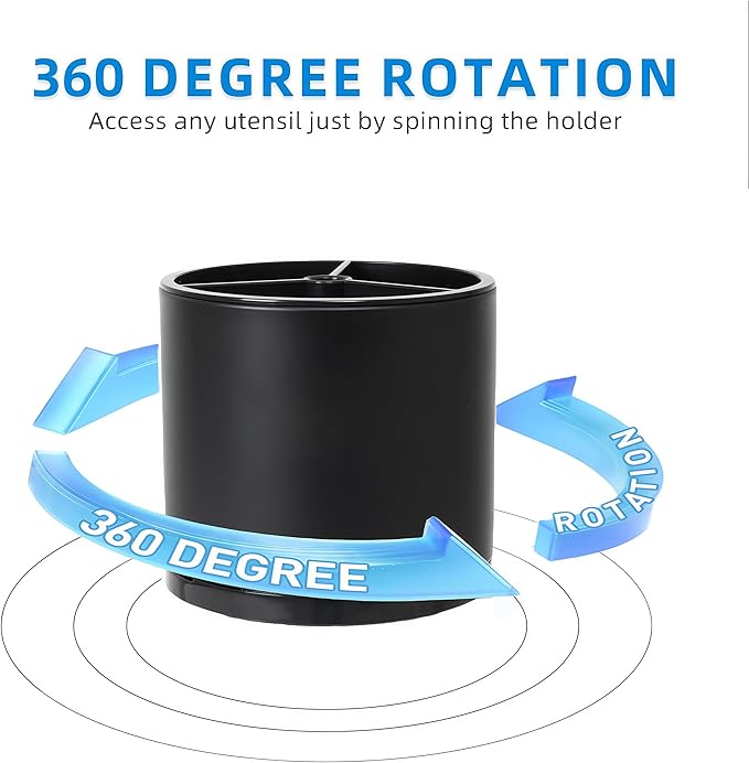 - 360° Rotating Design: Experience unparalleled convenience with our smooth-gliding, 360-degree rotation. Simply spin the holder to effortlessly access any utensil you need, eliminating the need to rummage through a tangled mess. This innovative feature transforms your kitchen storage into a seamless, efficient experience.