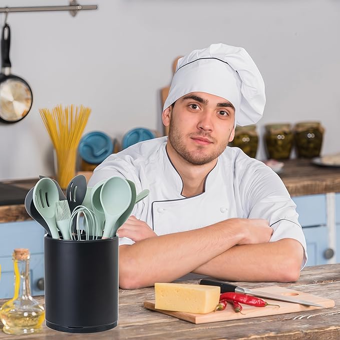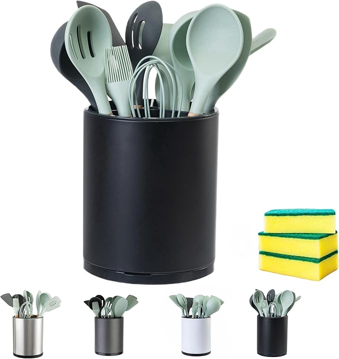 - Smooth 360° Rotation: Experience unparalleled convenience with our smooth-gliding, 360-degree rotation feature. Simply spin the holder to access any utensil you need, eliminating the frustration of searching through a tangled mess. This innovative design ensures that your utensils are always within easy reach, making your kitchen tasks more efficient and enjoyable.
