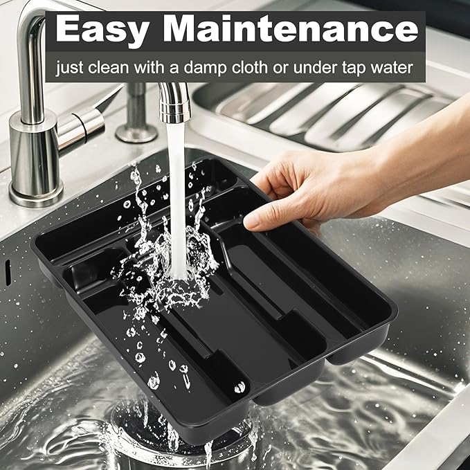 - Space Efficient:Compact flatware organizer fits small kitchens perfectly. Just 3cm height maximizes drawer space without compromising capacity.
