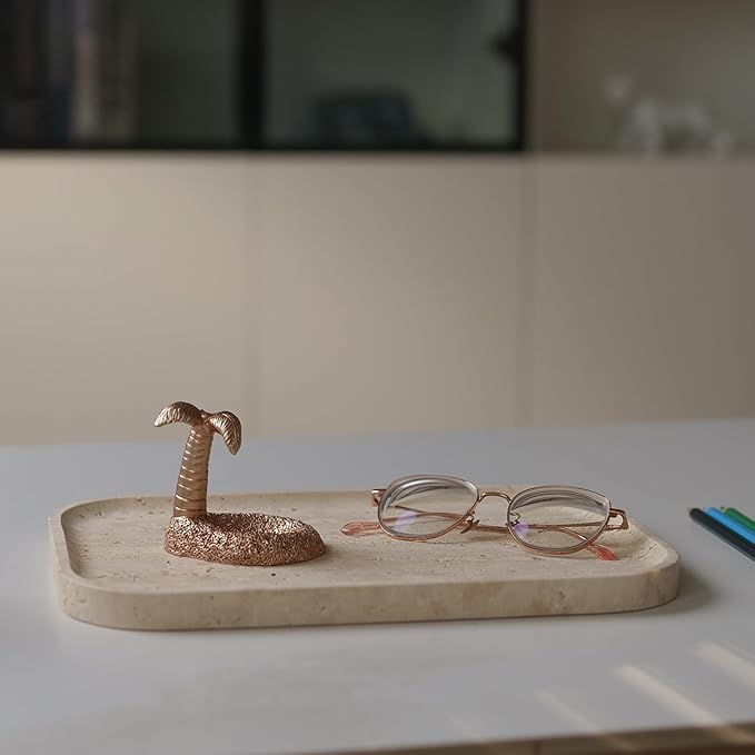 - Multi-Functional Décor Essential:Transform from a vanity organizer (holding rings, perfumes) to a coffee table centerpiece (displaying plants, coasters) or kitchen serving tray. Textured stone base prevents items from sliding, while lightweight design ensures easy portability.