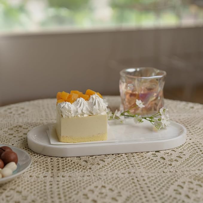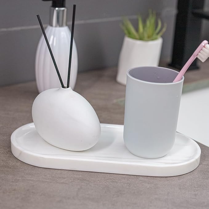 Marble Tray 9.8”x4.7”x0.6”| Oval Stone Tray for Kitchen Counter, Bathroom Vanity & Jewelry Organization – Natural Durable Marble Design (Star White)