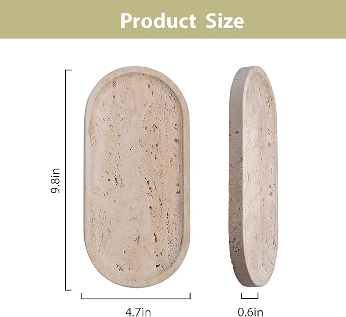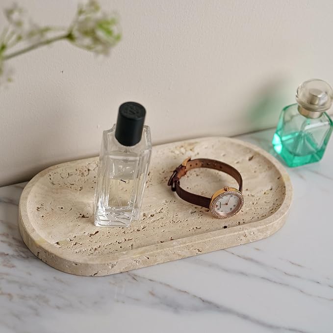 - Premium Travertine Craftsmanship Handcrafted from natural travertine stone with organic porous textures, this tray combines rustic charm and modern minimalism. Its neutral color palette effortlessly complements both farmhouse and contemporary interiors, offering timeless elegance.