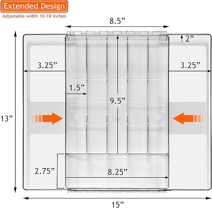 - User-Friendly: Easy to customize to your space! Simply slide both expandable sides to your desired width to fit your drawer and utilize all of its space.