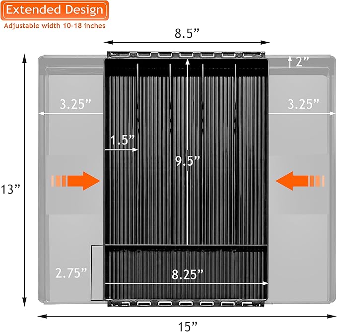 - User-Friendly: Easy to customize to your space! Simply slide both expandable sides to your desired width to fit your drawer and utilize all of its space.