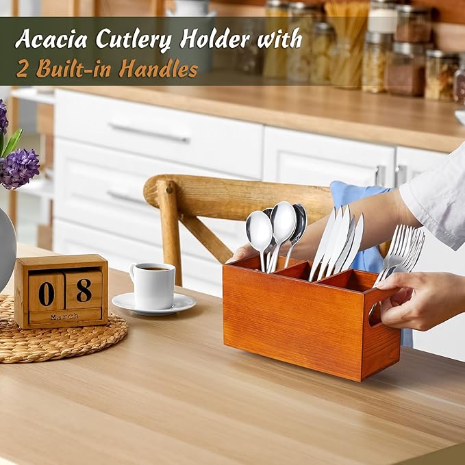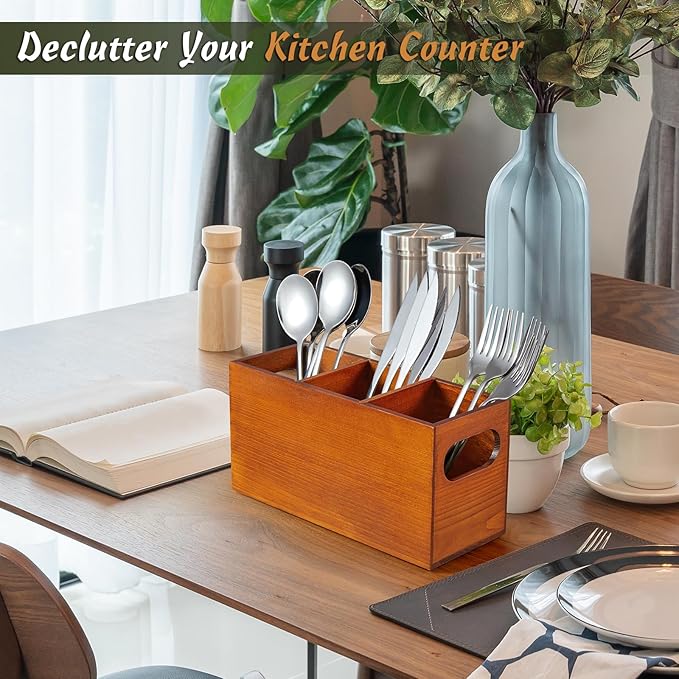 - Handmade Wooden Organizer: DRASTAR utensil holder with size of 9”x3.5”x4.5“, handcrafted from solid wood, the utensil box is sturdy and minimalist and can hold a large amount of cutlery