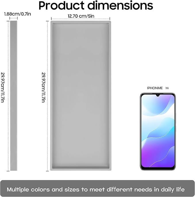 Vanity and Bathroom Tray, 11.8" ABS Countertop Organizer,Waterproof Vanity Tray for Toilet Tank,Perfume,Soap,Keys,Bathroom Accessories,Kitchen and Bath Trays,Non Slip Small Trays,Gray