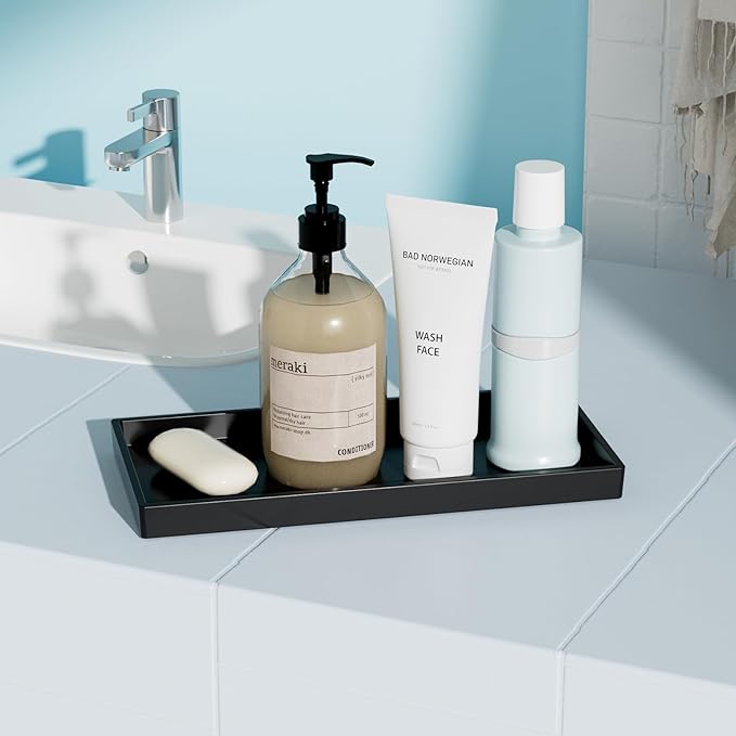 - Stylish and Hygienic Decor:Matte black finish pairs with marble bathroom accessories or minimalist decor.Use as a soap dispenser tray,trinket tray,or candle tray.Non porous surface can resist water accumulation,safe for humid areas like toilet trays