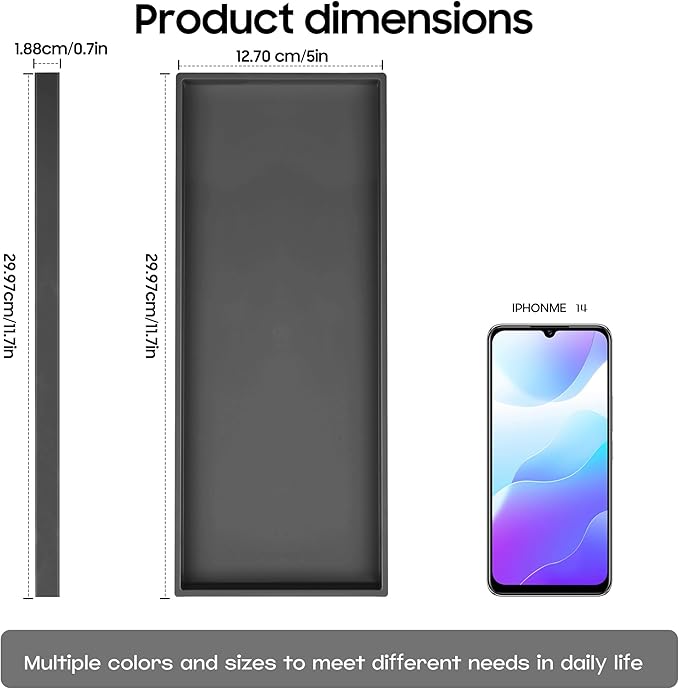 - Space Saving and Multi Functional:Compact 11.8" design fits sinks,countertops,or window sills.Use as a decorative tray for candles,key tray,or sink caddy.Raised edges secure items,ideal for bathroom vanity trays or small spaces like shower shelves