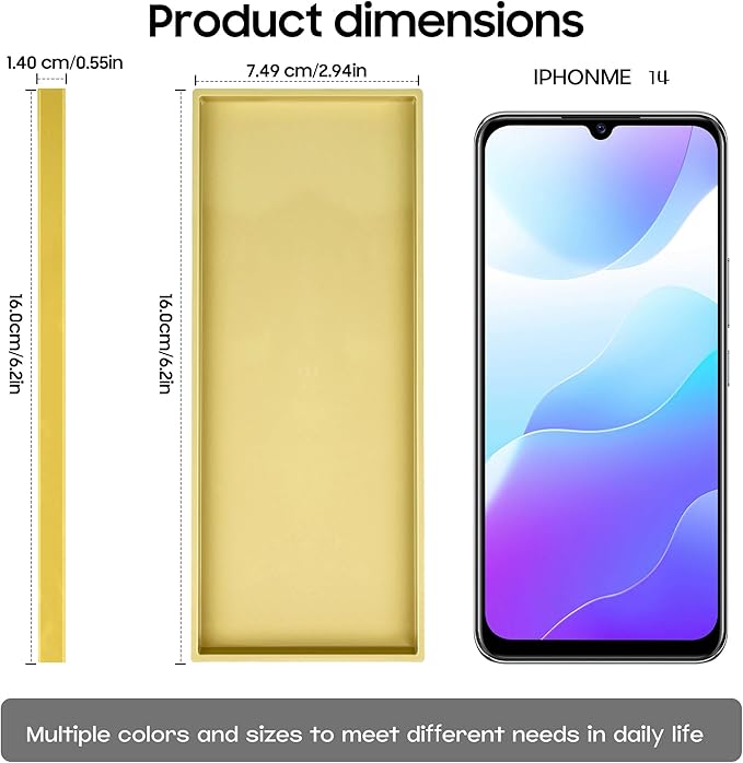 - Space Saving and Multi Functional:Compact 6.3" design fits sinks,countertops,or window sills.Use as a decorative tray for candles,key tray,or sink caddy.Raised edges secure items,ideal for bathroom vanity trays or small spaces like shower shelves