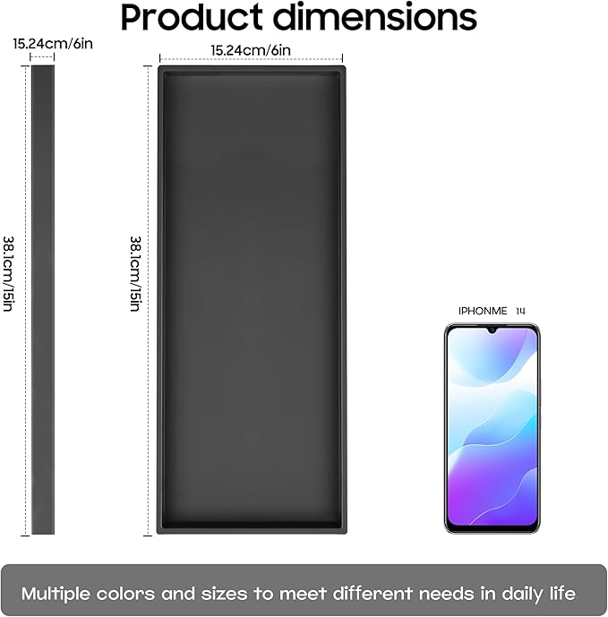 - Space Saving and Multi Functional:Compact 15" design fits sinks,countertops,or window sills.Use as a decorative tray for candles,key tray,or sink caddy.Raised edges secure items,ideal for bathroom vanity trays or small spaces like shower shelves