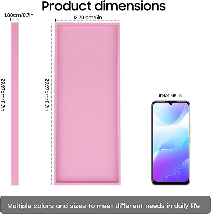 Vanity and Bathroom Tray, 11.8" ABS Countertop Organizer,Waterproof Vanity Tray for Toilet Tank,Perfume,Soap,Keys,Bathroom Accessories,Kitchen and Bath Trays,Non Slip Small Trays,Pink