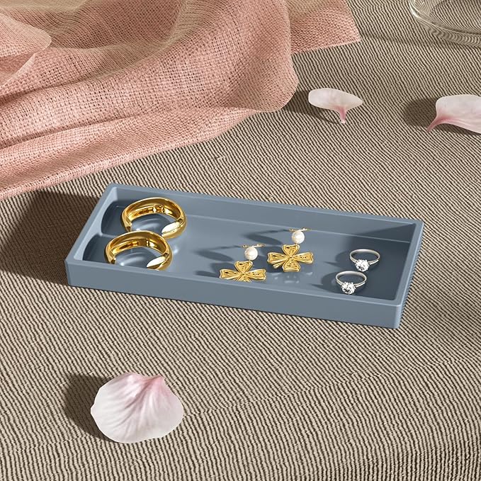 - Easy Clean:Waterproof design suitable for wiping with a damp cloth or rinse clean.Lightweight,resists warping in humidity and dishwasher safe.Recyclable,perfect as a bathroom counter tray,perfume tray or toilet tray
