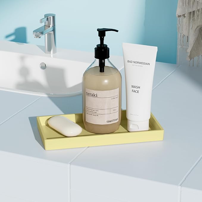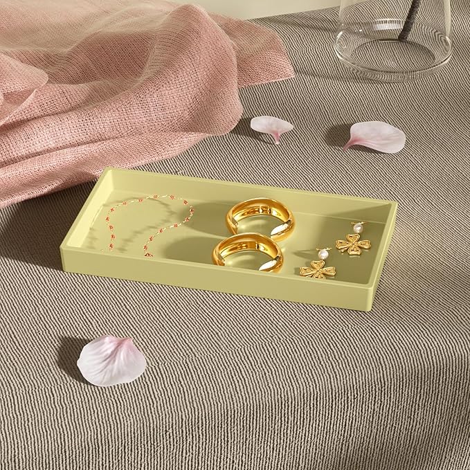 - Easy Clean:Waterproof design suitable for wiping with a damp cloth or rinse clean.Lightweight,resists warping in humidity and dishwasher safe.Recyclable,perfect as a bathroom counter tray,perfume tray or toilet tray