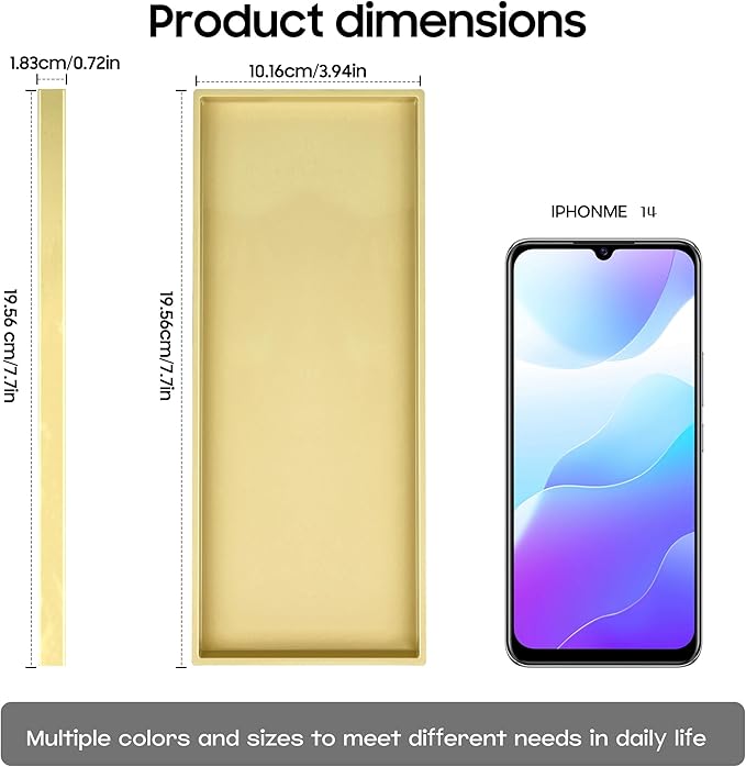 - Space Saving and Multi Functional:Compact 7.7" design fits sinks,countertops,or window sills.Use as a decorative tray for candles,key tray,or sink caddy.Raised edges secure items,ideal for bathroom vanity trays or small spaces like shower shelves