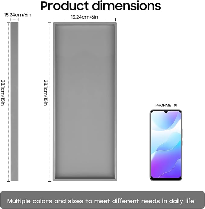 - Space Saving and Multi Functional:Compact 15" design fits sinks,countertops,or window sills.Use as a decorative tray for candles,key tray,or sink caddy.Raised edges secure items,ideal for bathroom vanity trays or small spaces like shower shelves
