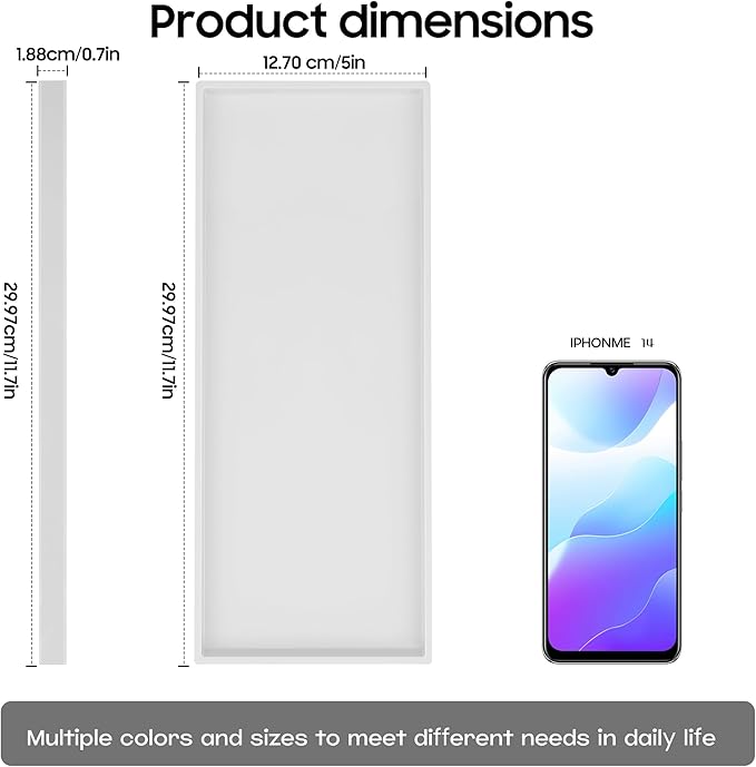 - Space Saving and Multi Functional:Compact 11.8" design fits sinks,countertops,or window sills.Use as a decorative tray for candles,key tray,or sink caddy.Raised edges secure items,ideal for bathroom vanity trays or small spaces like shower shelves