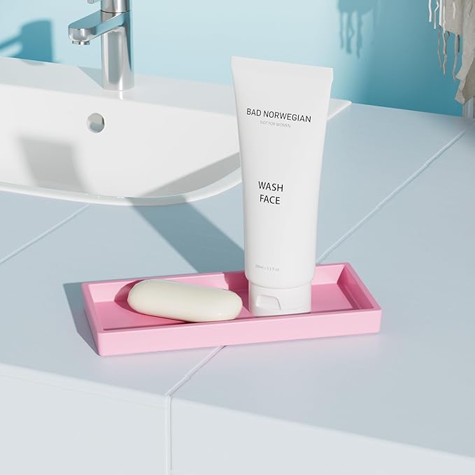 Vanity and Bathroom Tray, 6.3" ABS Countertop Organizer,Waterproof Vanity Tray for Toilet Tank,Perfume,Soap,Keys,Bathroom Accessories,Kitchen and Bath Trays,Non Slip Small Trays,Pink