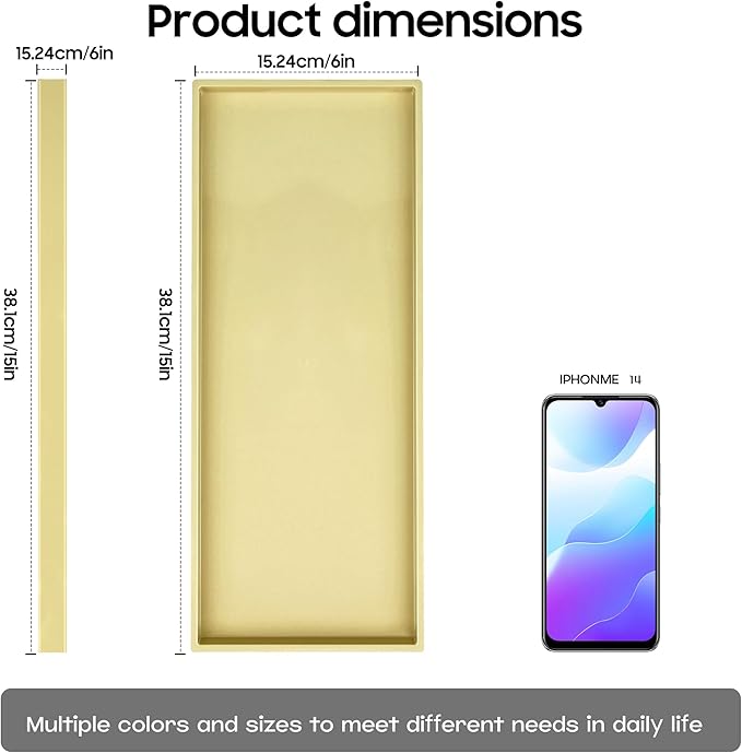 - Space Saving and Multi Functional:Compact 15" design fits sinks,countertops,or window sills.Use as a decorative tray for candles,key tray,or sink caddy.Raised edges secure items,ideal for bathroom vanity trays or small spaces like shower shelves
