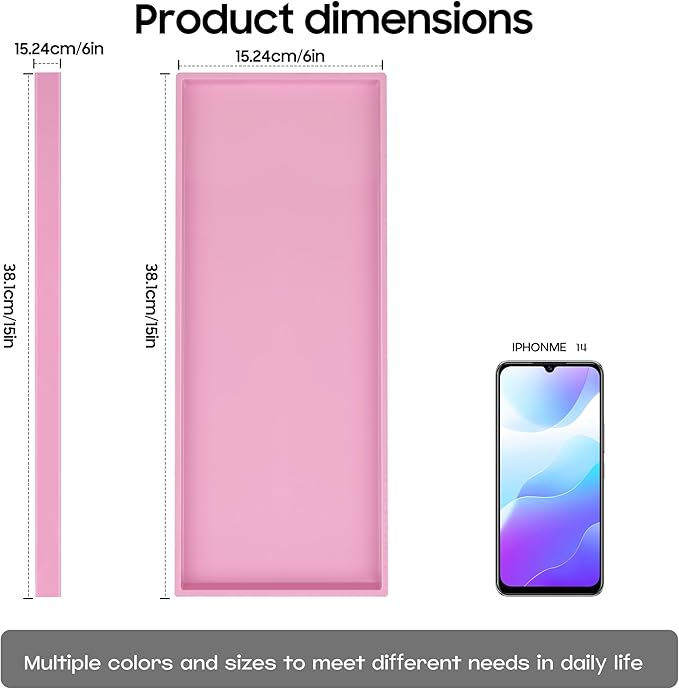 Vanity and Bathroom Tray, 15" ABS Countertop Organizer,Waterproof Vanity Tray for Toilet Tank,Perfume,Soap,Keys,Bathroom Accessories,Kitchen and Bath Trays,Non Slip Small Trays,Pink
